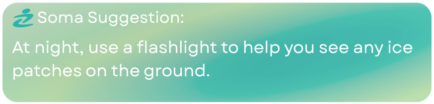 The best way to avoid an ice injury is to be prepared for your walk outside. Take smaller shuffling steps to prevent your risk of slipping. Stay aware of your surroundings and the ground ahead of you. This means keeping your phone out of your hand and your eyes on the ground!